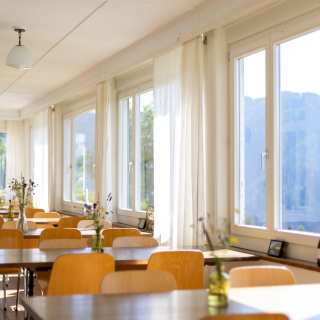 In unserem grossen Saal mit altem Parkett und Arvenholzwänden haben wir und Sie viele Möglichkeiten. Wählen Sie den Saal für grosse Anlässe, für eine Aufführung oder um mit Familie und Freunden zu dinieren. Immer haben wir eine Kinderspielecke mit spannendem Spielzeug und Büchern, lassen sie die Kinder tun und entspannen sie sich selbst!